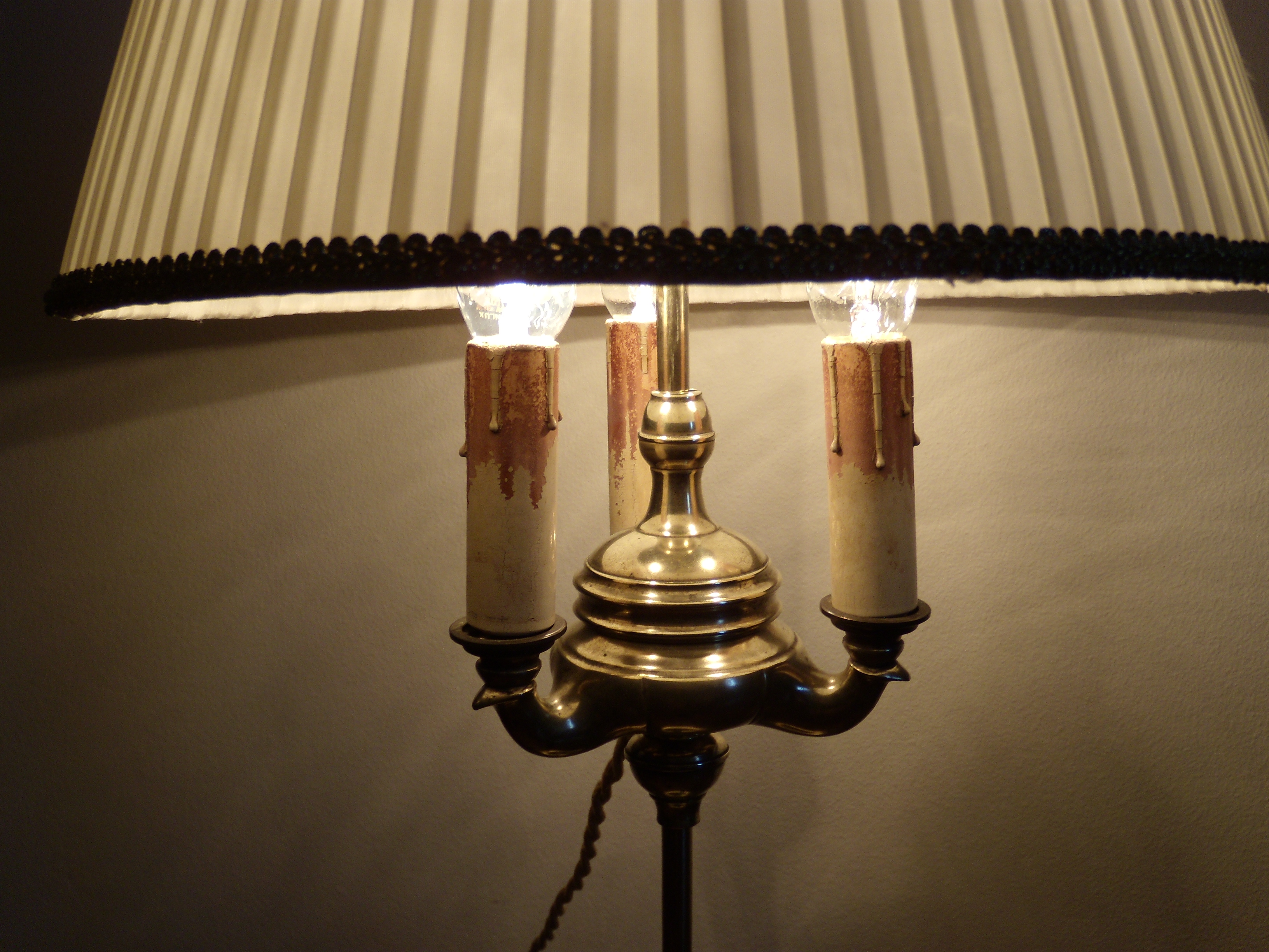 Очень эффектная и элегантная электрифицированная масляная лампа 19 века. Шелковый абажур был добавлен, когда лампа стала электрической, примерно в середине 20 века. Латунные детали лампы очевидно ручной работы. Очень тщательная подгонка деталей. Высота абажура и ламп регулируется. Лампа привезена из Франции. Высота 61 см.