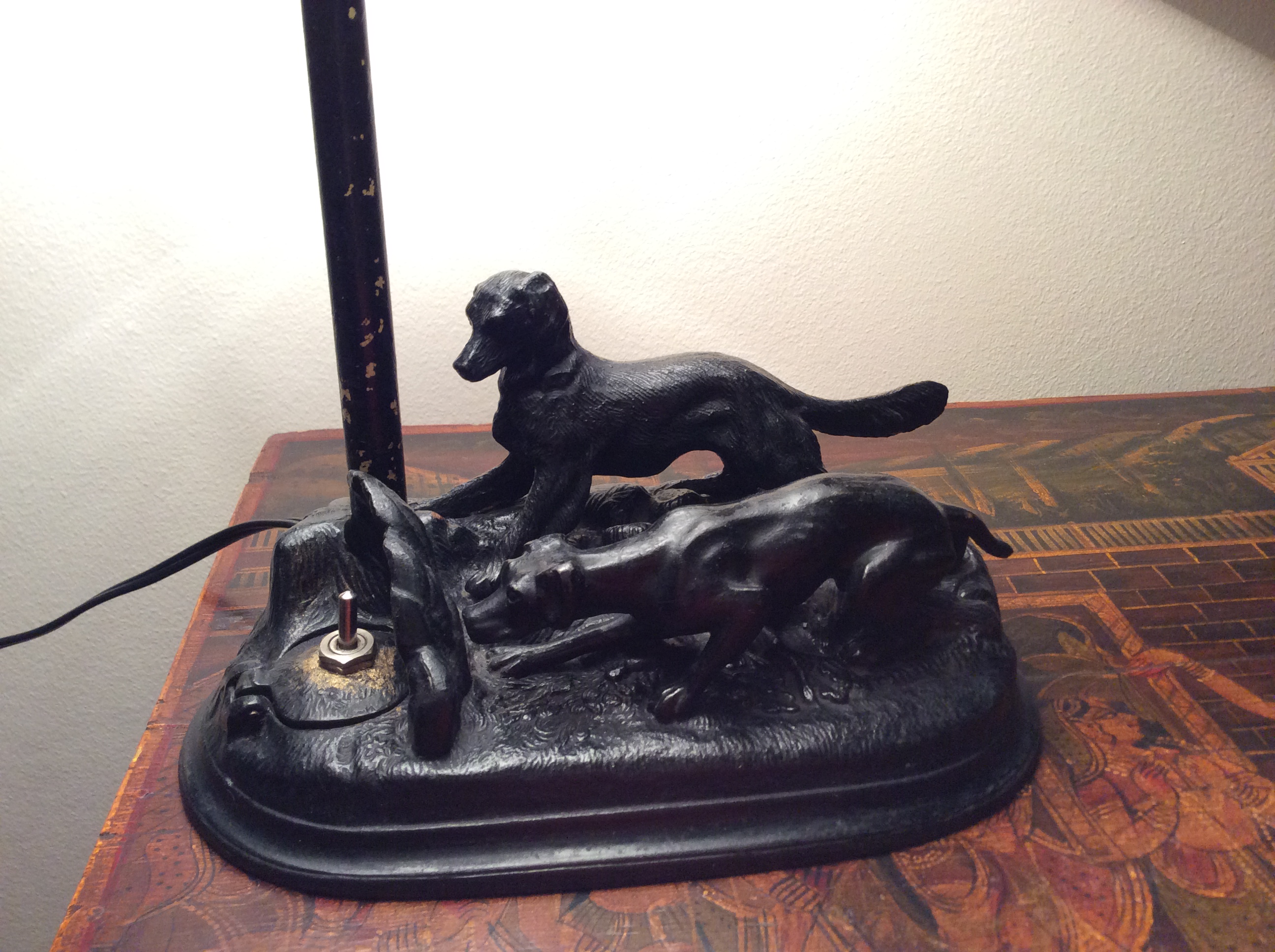 Пара чудесных ламп середины 20 века. Керамика ручной работы, бронза с тонко проработанными деталями. Бронзовая ажурная тесьма кажется развевающейся на легком сквозняке. Родные плафоны узорчатого стекла. Есть настенные крепления, будут прекрасно смотреться и в качестве бра. Высота 32 см.