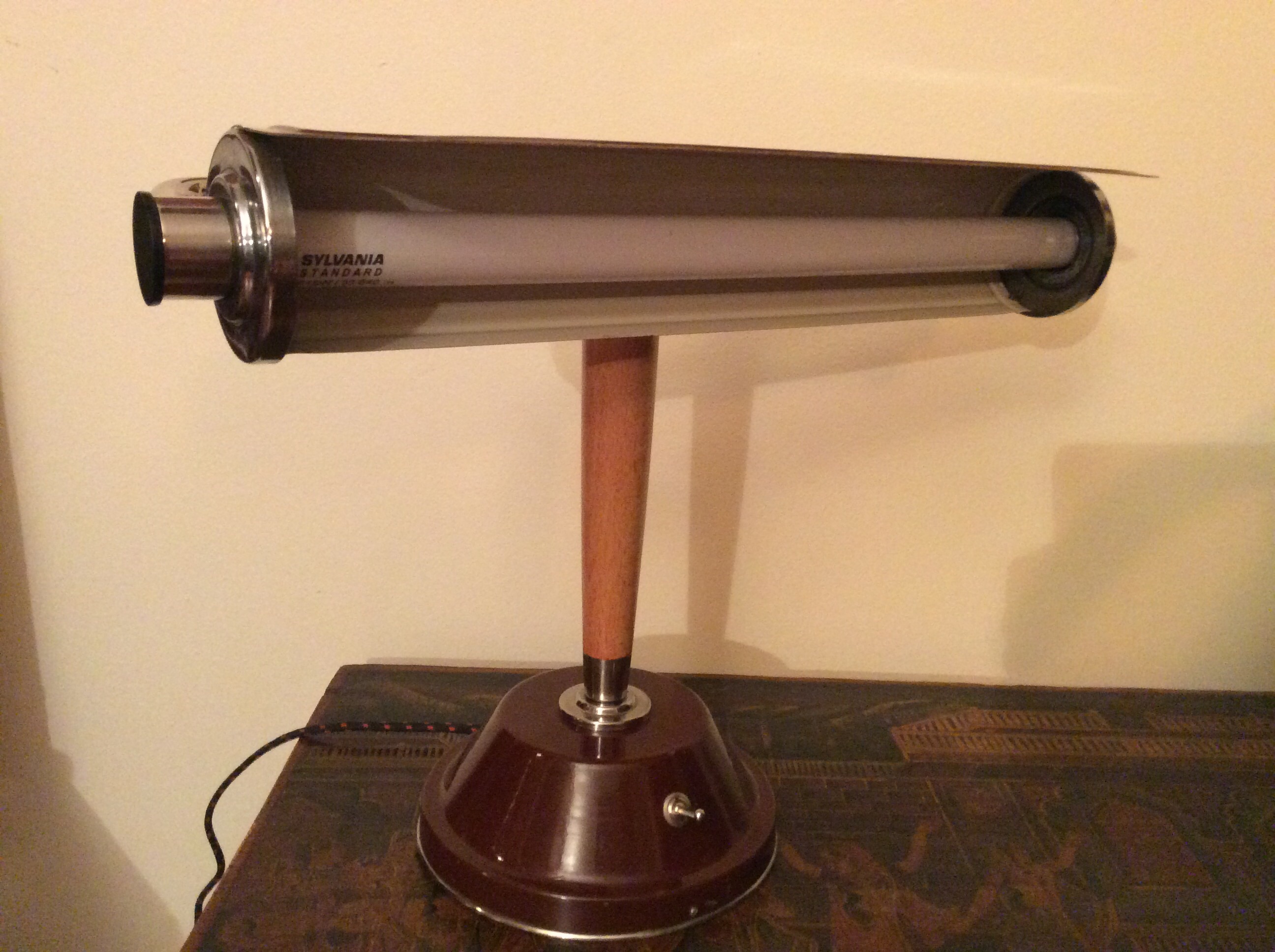 Большая лампа из французского бронзового канделябра 19 века. Плафон современный. Высота 80 см.