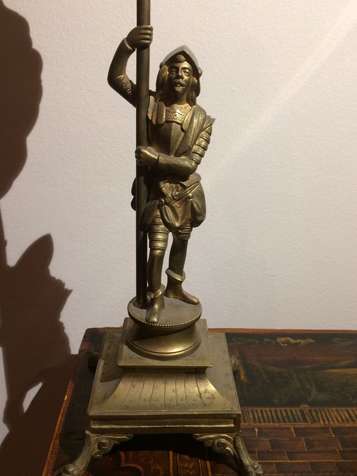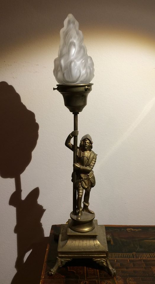 Европа, 20е-30е гг, шпиатр, родной бакелитовый выключатель в основании лампы, интересный плафон прозрачно-молочно-зеленоватого стекла. Высота 22 см.